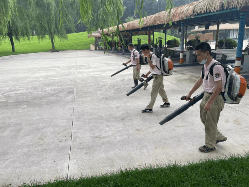 为防止暴雨过后出现疫情,景区积极做好预防疾病措施,做好卫生消毒防疫工作,对景区内涝点、低洼点、绿化带、停车场、下水道、公共营业区等区域进行全面消杀,全力做好暴雨后防疫消杀工作,严防传染性疾病的发生和蔓延。