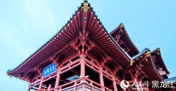 登上华夏东极国家森林公园的东极阁,沐浴在祖国大陆的第一缕阳光中,整个抚远市的绚丽美景尽收眼底。站在楼阁上眺望远方,江、林、河、田纵横交错,连绵的山体犹如一只大鹏鸟展翅俯卧在黑龙江畔。