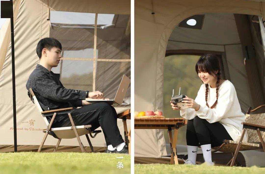 这两款帐篷和之前一宿的帐篷一样,仍然采用一键自动充气式的搭建方式。