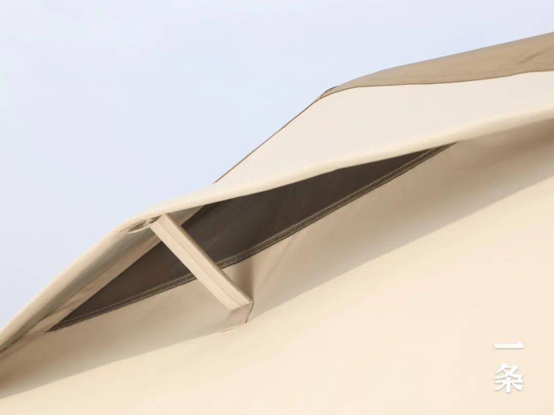 天幕的挑高为2米,采用加长设计,向外伸出了大约1.7米长的区域范围,又为这个“豪宅”争取到了生活面积。