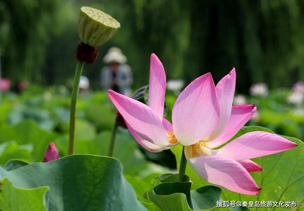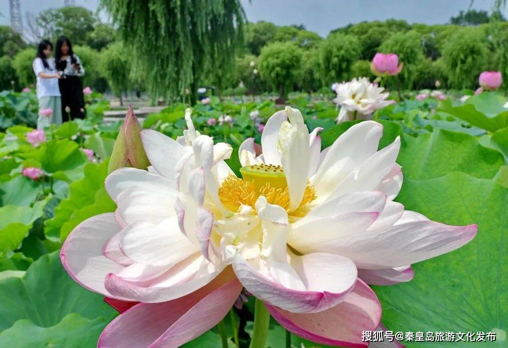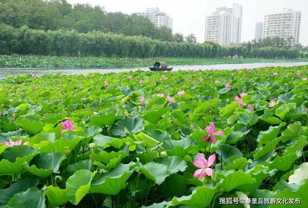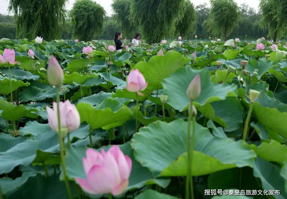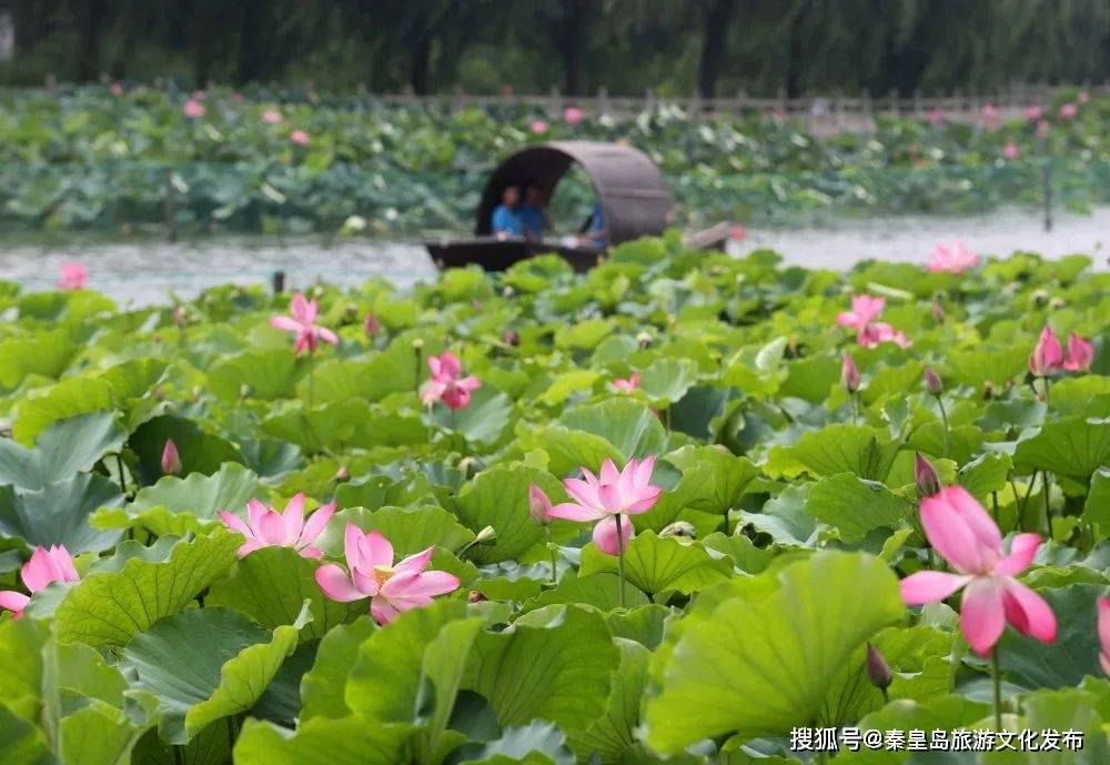 近日,河北省秦皇岛市抚宁区南戴河中华荷园的1200多亩荷花相继绽放,吸引游客前来赏荷游园。