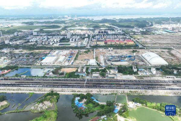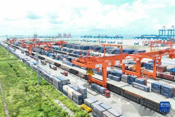 这是7月22日拍摄的钦州港站和周边工业区(无人机照片)。