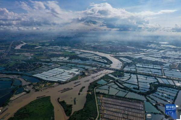 这是7月23日拍摄的茅尾海附近的水产养殖区(无人机照片)。
