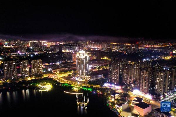 这是7月21日拍摄的钦州市夜景(无人机照片)。