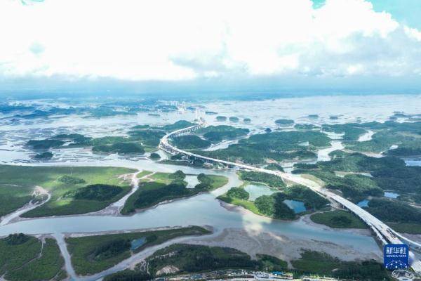 这是7月22日拍摄的建设中的广西最长跨海大桥——龙门大桥(无人机照片)。
