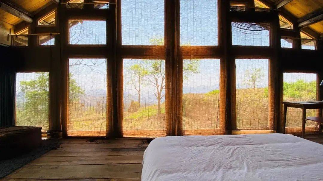 后来,他决定将读书楼改为民宿,这便有了第一家店——“群山之心·夹缝岩”。民宿定位“山居”,深藏于贵州南部原始森林中,国内首个不通公路的诗歌主题精品民宿,是靠马匹驮出来的,前后修建了6年,是2021年贵州特色民宿之一。