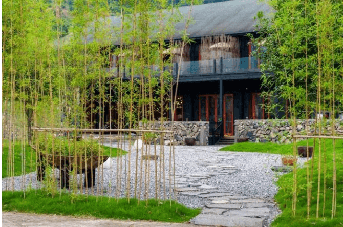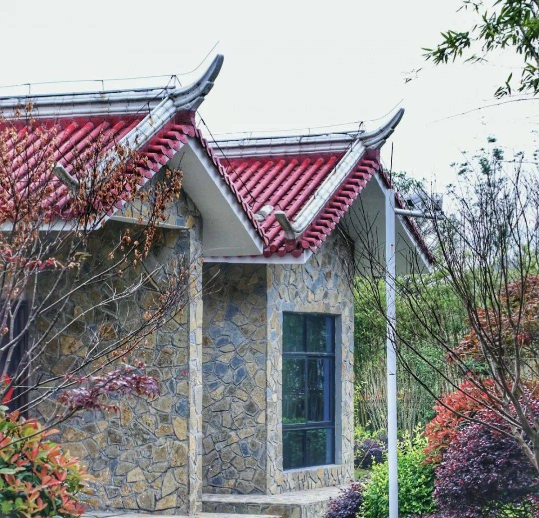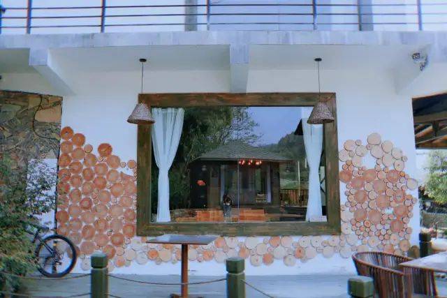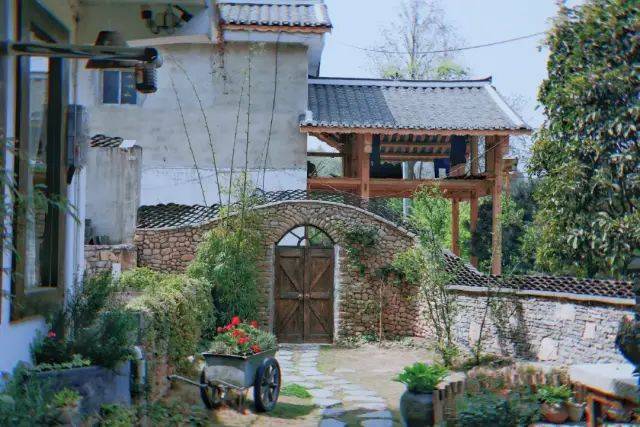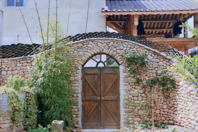 石墙灰瓦木门的老房子和美丽的大山相得益彰,推门走进古朴的院落,让人浮躁的内心瞬间就能平和起来。建筑四面环山,屋顶交错,四周树木葱郁,远山美景可观,近处绿植相邻,在不同的时间里,透过不同的窗口,都是不同的风景,也都是整幅无框山野的自然画卷。