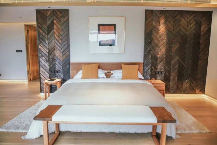 木材、石材、水泥和瓦片的使用,让整个民宿散发出静谧舒适感,色调的统一、质感的多变具有独特的美感。
