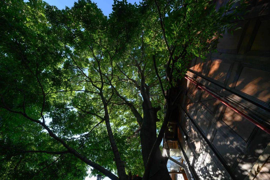 推开客栈后院的玻璃门,一棵高大笔直的沙棠树映入眼帘,它可是店里的守护神。
