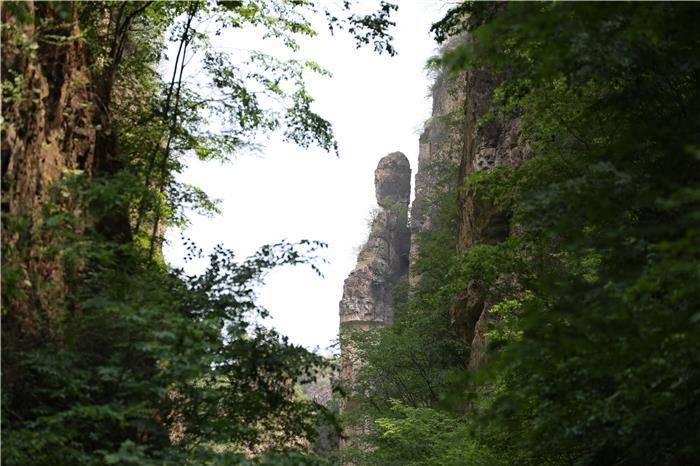 “一线天”是嶂谷的形成的初期阶段,由物理风化作用和间歇性水流下切及侧向侵蚀,使垂直地面的裂隙(节理)不断“扩张”,形成的十分狭窄的嶂谷。进入“一线天”,悬崖峭壁,雄险惊心,窄涧幽谷,天光一线,真有“双崖依天立,万仞从地劈”的意境。