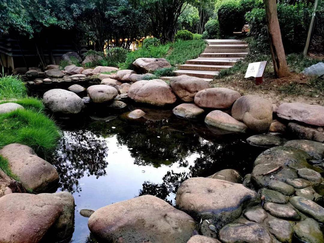 从元通站的2号、5号口出来,你已经身处河西中央公园之中。这里静谧自由自成一方天地,与宇宙中心的忙碌似乎有一些格格不入。公园中心的一池碧水恍若镜面,倒映出蓝天白天、绿树红花、亭台楼阁……从湖中堆叠的巨石上走过,是一片绿意盎然的小丘,拾级而上但闻泉水叮咚。一条人工搭建的溪流从小丘顶部蜿蜒而下,水中不时能看到小鱼和青蛙的身影。溪流两边有几个长条座椅,傍晚在树荫下静坐,听着溪水潺潺流淌,吹着清凉晚风,别有一番“静享”的禅意。