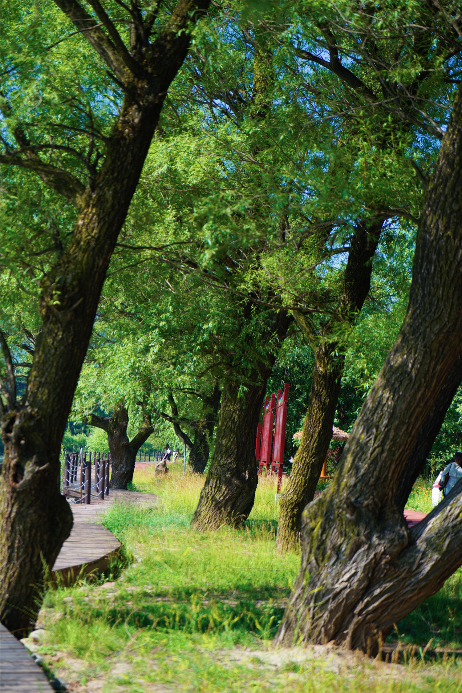 看到我不停地赞叹,旁边的一位大叔说:它可是被甘肃人赞为兰州后花园的洮河国家湿地公园。这里植被茂盛,空气清新,面临清澈见底的洮河水,漫步在公园的休闲栈道,欣赏着河边的百年古柳,花花草草,夏日燥热的心瞬间就静了下来。这里的夏天是清爽宜人的,这里的阳光是温和而带着洮河水的味道,静静流淌的洮河水滋养着两岸的洮河人,孕育着湿地中的野生鸟类和动植物。