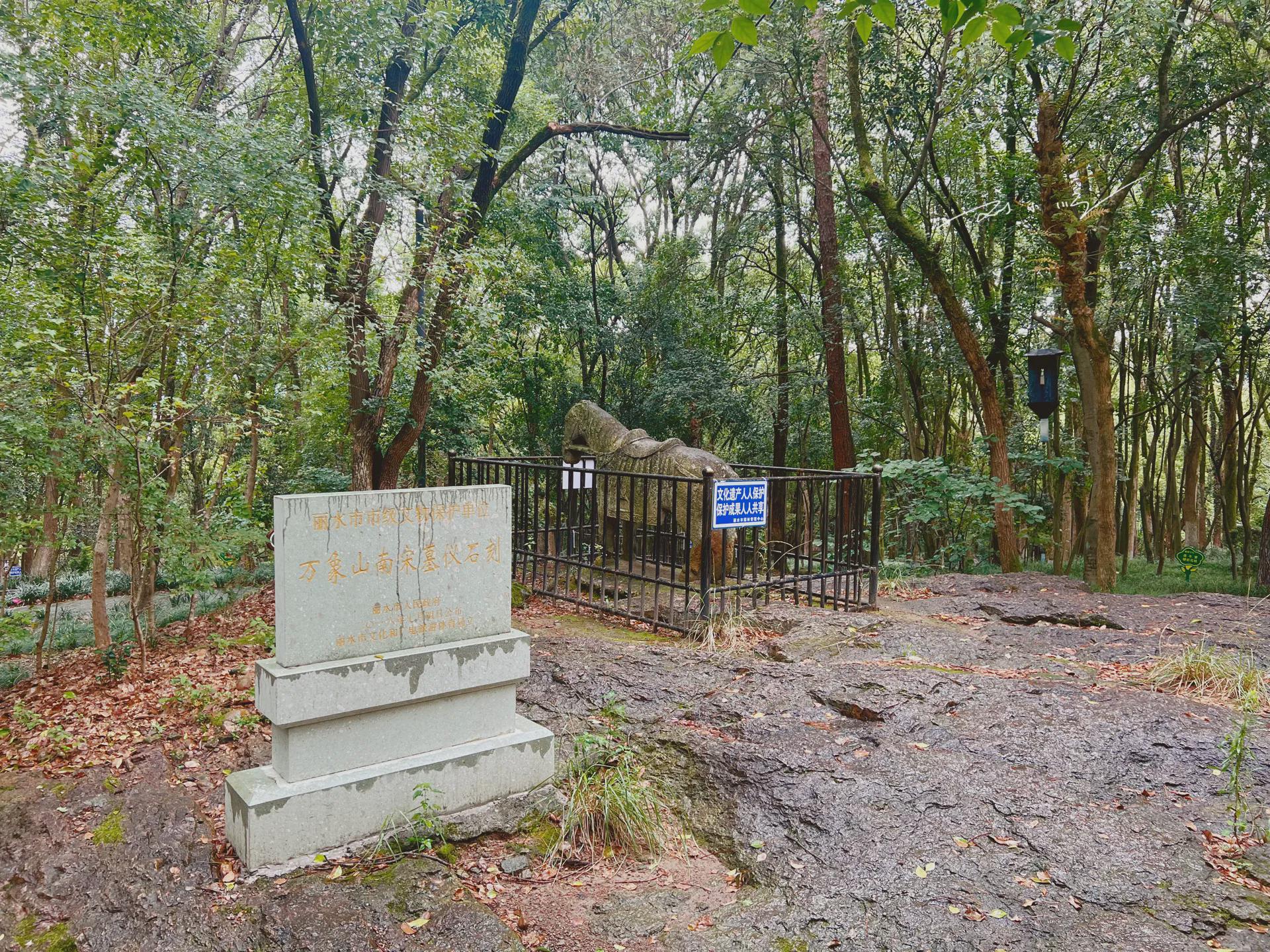 原来,“万象山公园”里的这些“神秘石雕”全称叫做“万象山南宋墓仪石刻”,还是丽水市的市级文物保护单位,也算是我们这次来到丽水“万象山公园”游玩得到的意外之喜了。