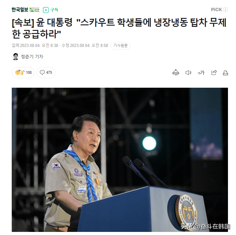 尽管韩国总统尹锡悦都亲自指示给童军露营大会无限制提供遮阳伞、空调、药品,给他们改善伙食,所有现场问题都要立即得到解决,但是在SNS上各个国家的家长以及网友的抱怨依旧源源不断。