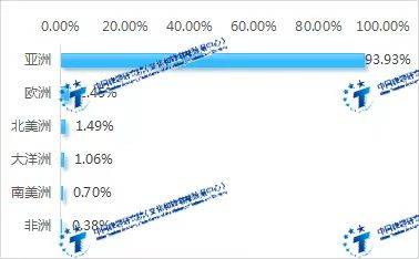 上半年出境游目的地六大洲接待内地(大陆)游客占比 图源:中国旅游研究院