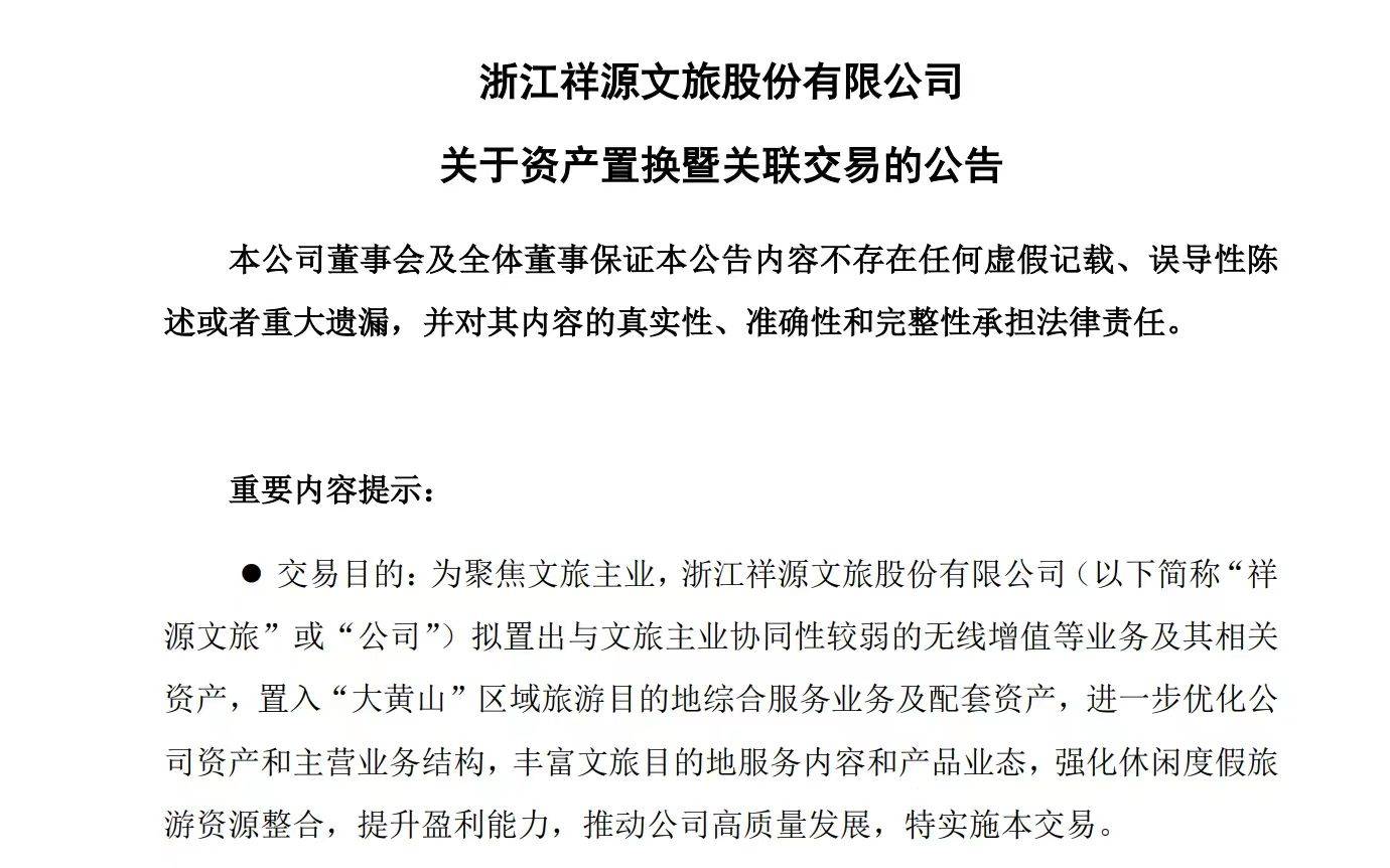 在最近两则公告中,祥源文旅公司多次提及两个关键词,即“聚焦文旅主业”和“转型”。这些关键词明确告知了该公司战略性业务调整:以实现业务重心聚焦于文旅主营领域,进行企业转型