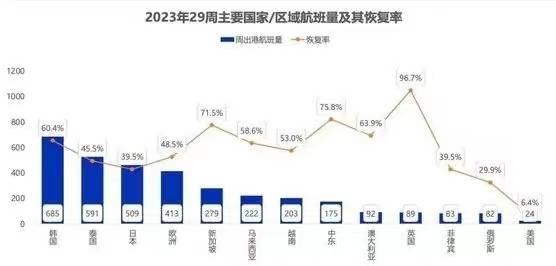 近期主要国家/区域航班量及恢复率 图源:航班管家