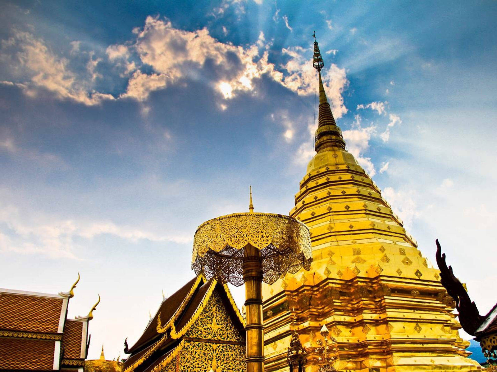 清迈最值得一游的景点之一是位于城市西北方向的素贴山(Doi Suthep),这里有一座名为素贴山寺(Wat Phra That Doi Suthep)的著名寺庙,建于14世纪,是清迈最神圣的地方之一。从寺庙可以俯瞰清迈全城的美景,尤其是日出和日落时分更加壮观。