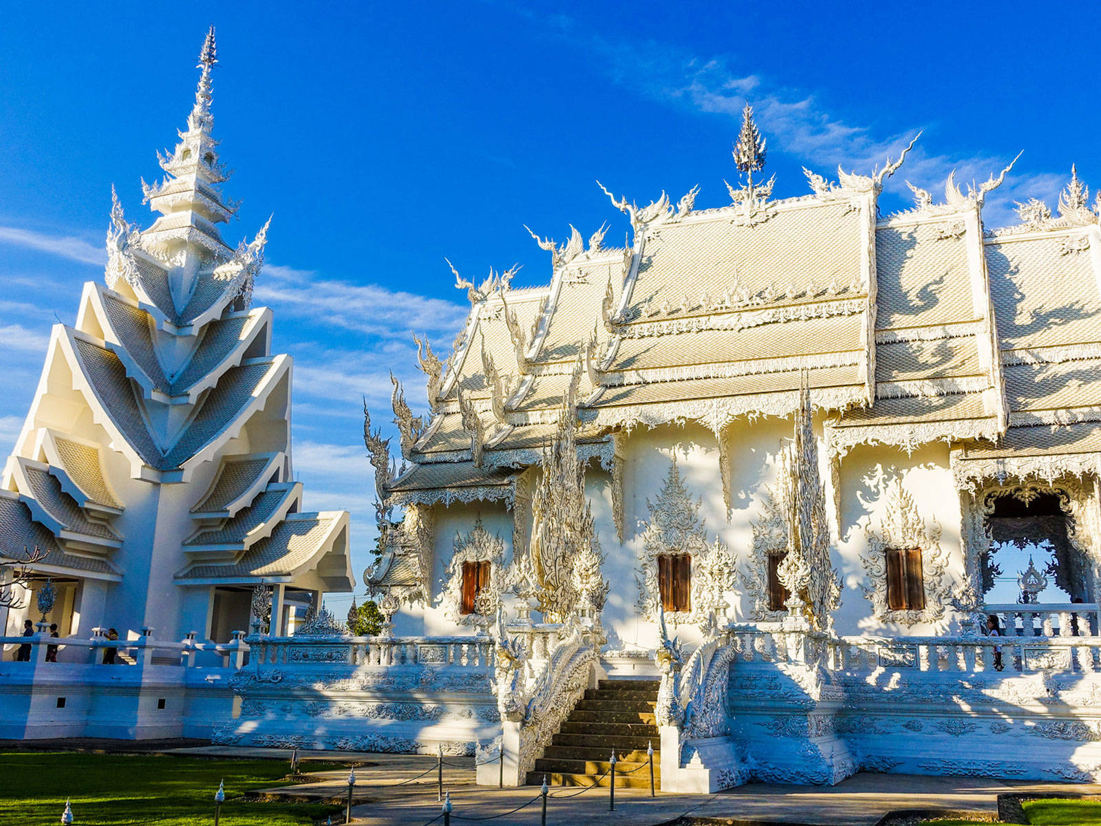 清莱最值得一游的景点之一是白庙(Wat Rong Khun),这是一座非常独特和现代的寺庙,由泰国著名艺术家查拉蒙·查拉姆(Chalermchai Kositpipat)设计和建造。白庙以白色为主色调,象征着佛教的纯洁和智慧,寺庙内外都装饰着许多精细和富有象征意义的雕塑和壁画。白庙不仅展示了泰国传统文化的精髓,也融合了现代文化的元素,如超人、哈利波特、星球大战等。