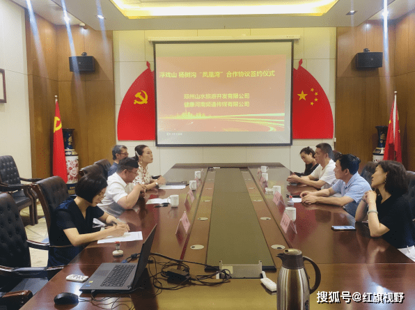 2023年8月4日,健康河南频道传媒有限公司与郑州山水旅游开发有限公司关于《巩义市新中镇杨树沟“凤凰湾”》项目签约仪式在郑州市永和国际广场4楼会议室隆重召开。健康河南频道产业中心总监韦振堂、行政中心总监黄晓蓓、外联中心副总监张少阳,郑州山水旅游董事李文静、集团总顾问姚建忠、副总王振武、设计部经理刘晓等人出席签约仪式。