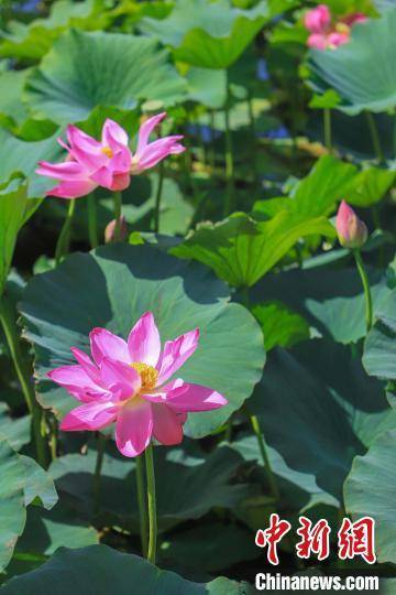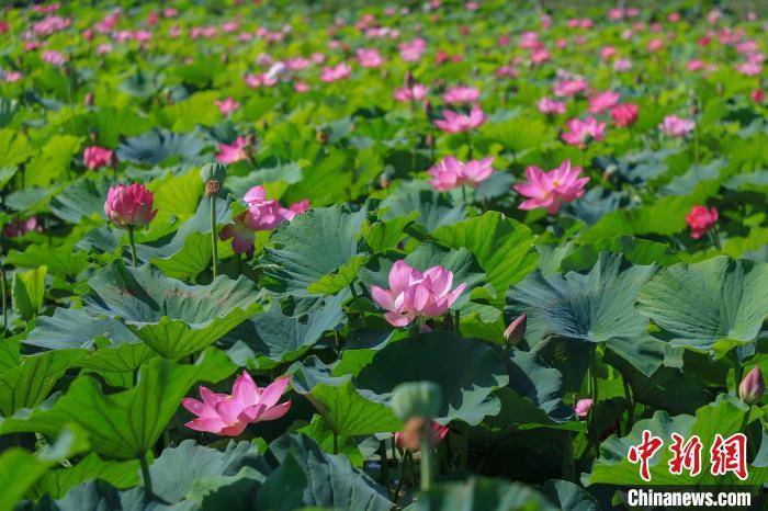 连片荷花绽放,场景美如画。 龚玲 摄