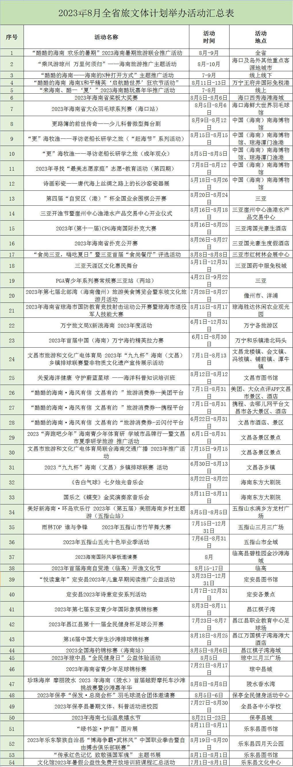 8月伊始,正值暑期游玩高峰期。为进一步激发暑期旅游消费活力,创新消费场景,海南省旅文厅及全省各市县策划推出推出了近50项旅文体活动,吸引广大游客来酷酷的海南嗨游一“夏”,撬动暑期文旅体经济。具体活动详情可关注“阳光海南网”公众号。