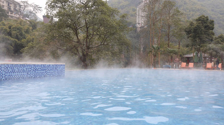 位于金佛山西坡天星小镇旁,动感温泉区(造浪池、山体滑道、儿童水寨)和泡池区(13个泡池)2大区域。该温泉井日出水量约2000立方米,水温55℃,属含偏硅酸的理疗低温温热矿水。