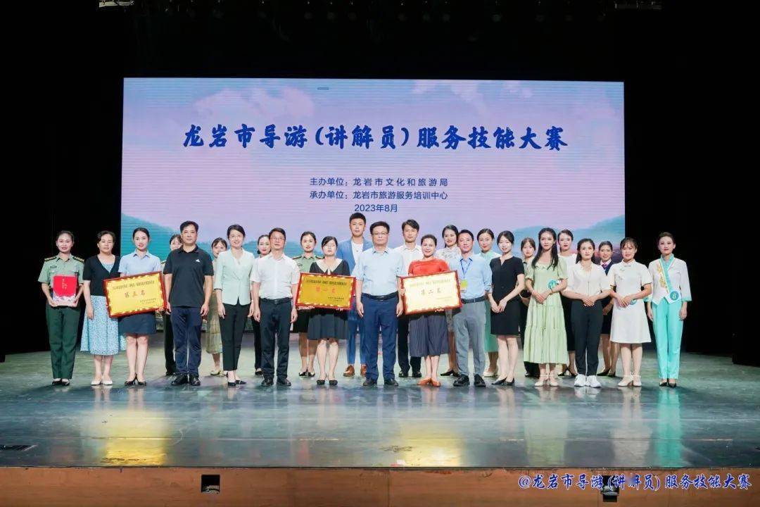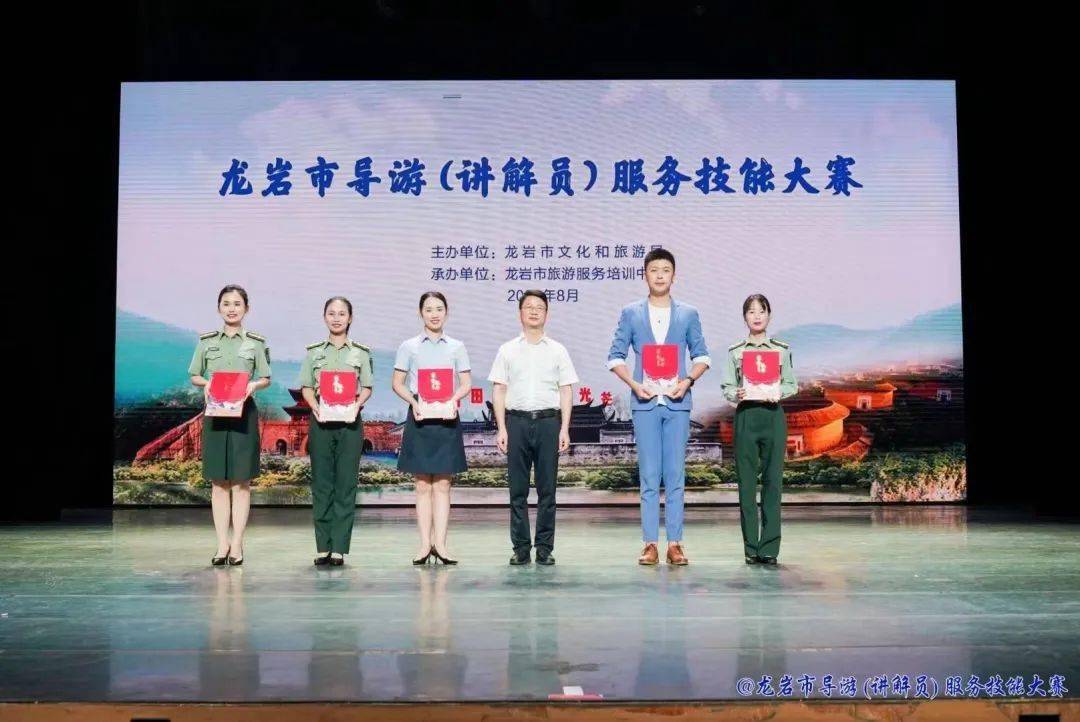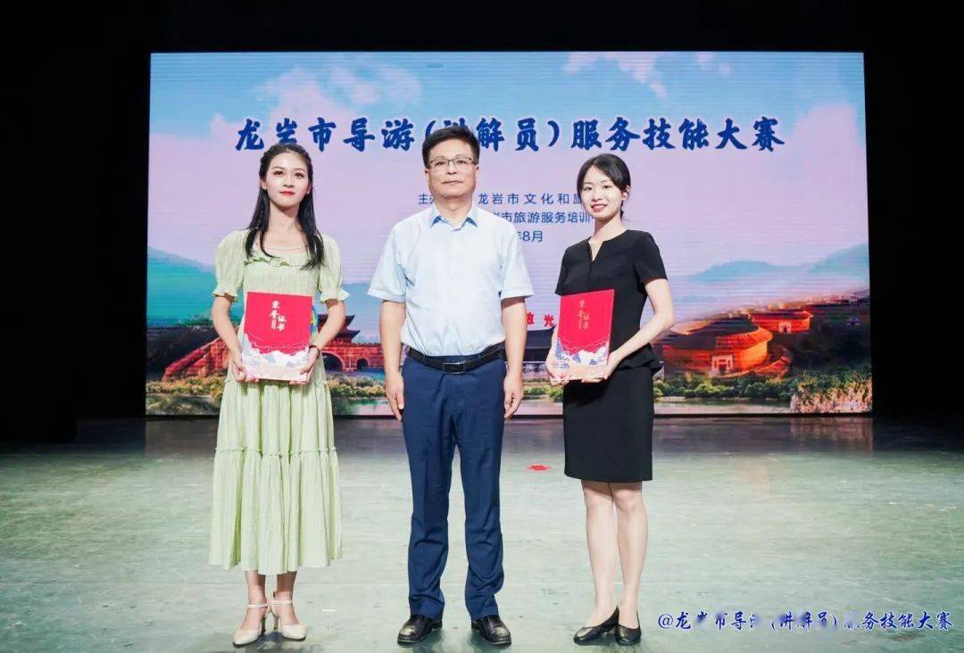 最终,武平参赛选手钟丽玲获金牌导游员称号,林舒、王青霞、毛静俏、廖永秀、傅伟芬获优秀导游员称号;新罗参赛选手胡依琼获金牌讲解员称号,赖金花、蓝秀娟、李玉玲、陈斌、赖潇敏获优秀讲解员称号。同时,在赛前网络宣传阶段,通过网络评选,评选出10名最佳人气奖荣誉。此外,上杭代表队获团队总分第一名、新罗代表队获团队总分第二名、连城代表队获团队总分第三名荣誉。比赛结束,市文化和旅游局党组书记郭浠恒,局党组成员、副局长王小庆分别为获奖选手进行了颁奖。