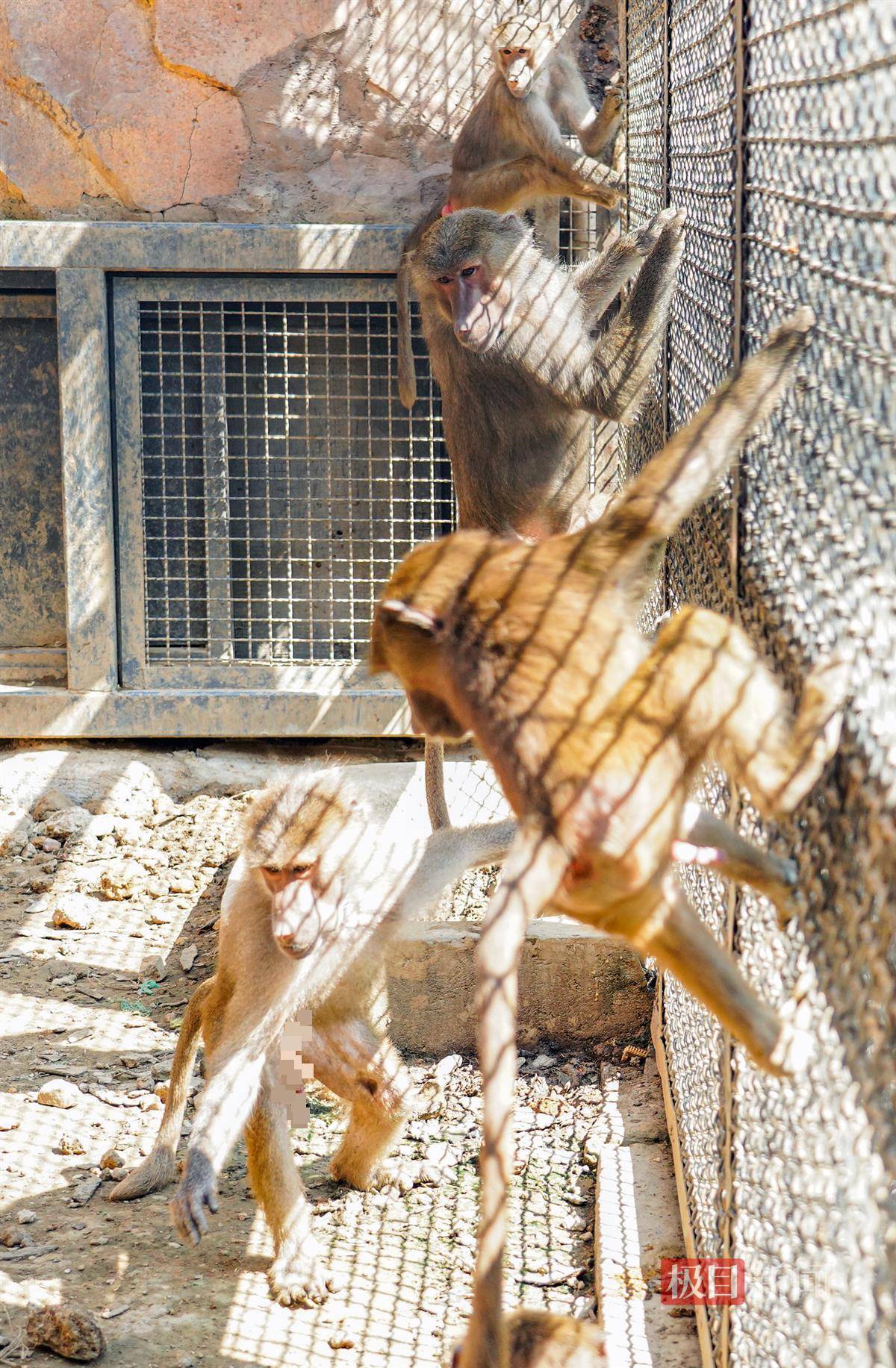 而当记者走进后场内室,见到6只阿拉伯狒狒时,有雄有雌,从毛发和肤色上,乍一看,难辨雄雌。