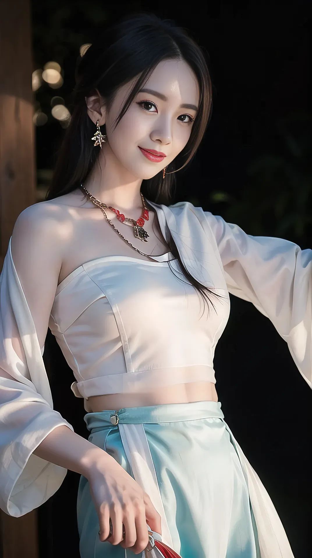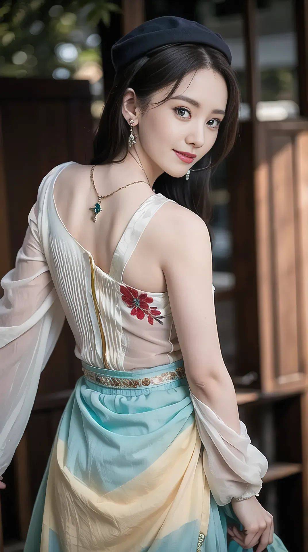 少女沿着音乐花海的小径走来,眼前出现了一个宏伟的音乐喷泉。音乐喷泉喷薄着五颜六色的音符,伴随着旋律的起伏,音符们跳跃飞舞,宛如欢快的精灵,把音乐的魔力传递给每一个靠近的人。少女靠近喷泉,伸出手,一颗颗音符落在她的手心,化作温暖的力量,使她感到无比幸福和满足。她开始跟随音符的节奏舞动,舞姿轻盈而自由,她的身体仿佛变成了音乐的载体,把音符的魔力传达出去。