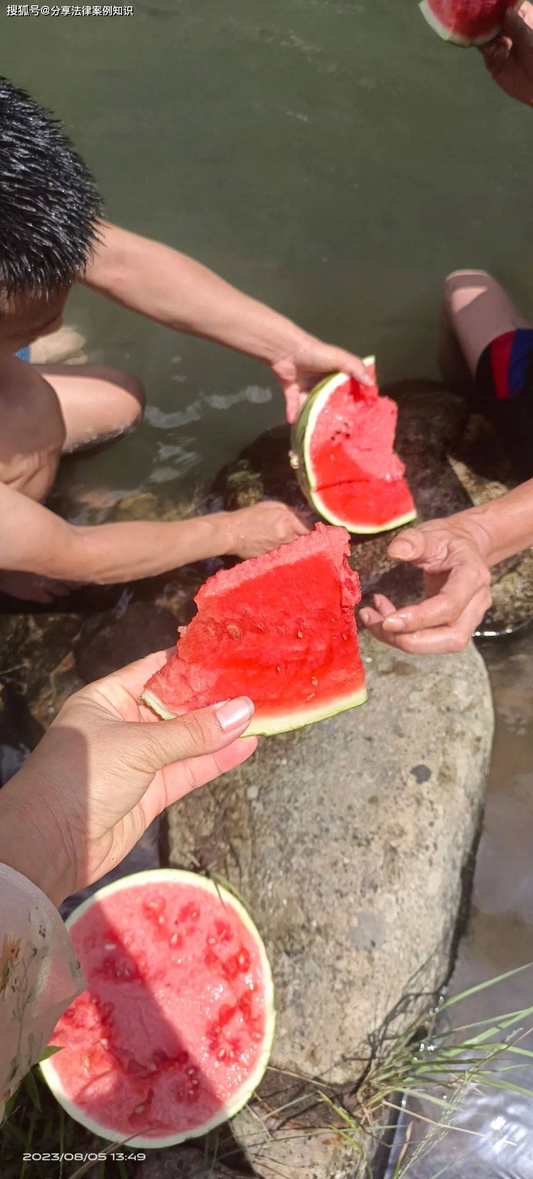 赤脚踩在光滑石头上、透明的水里,一股清凉从脚板贯穿全身,神清气爽。