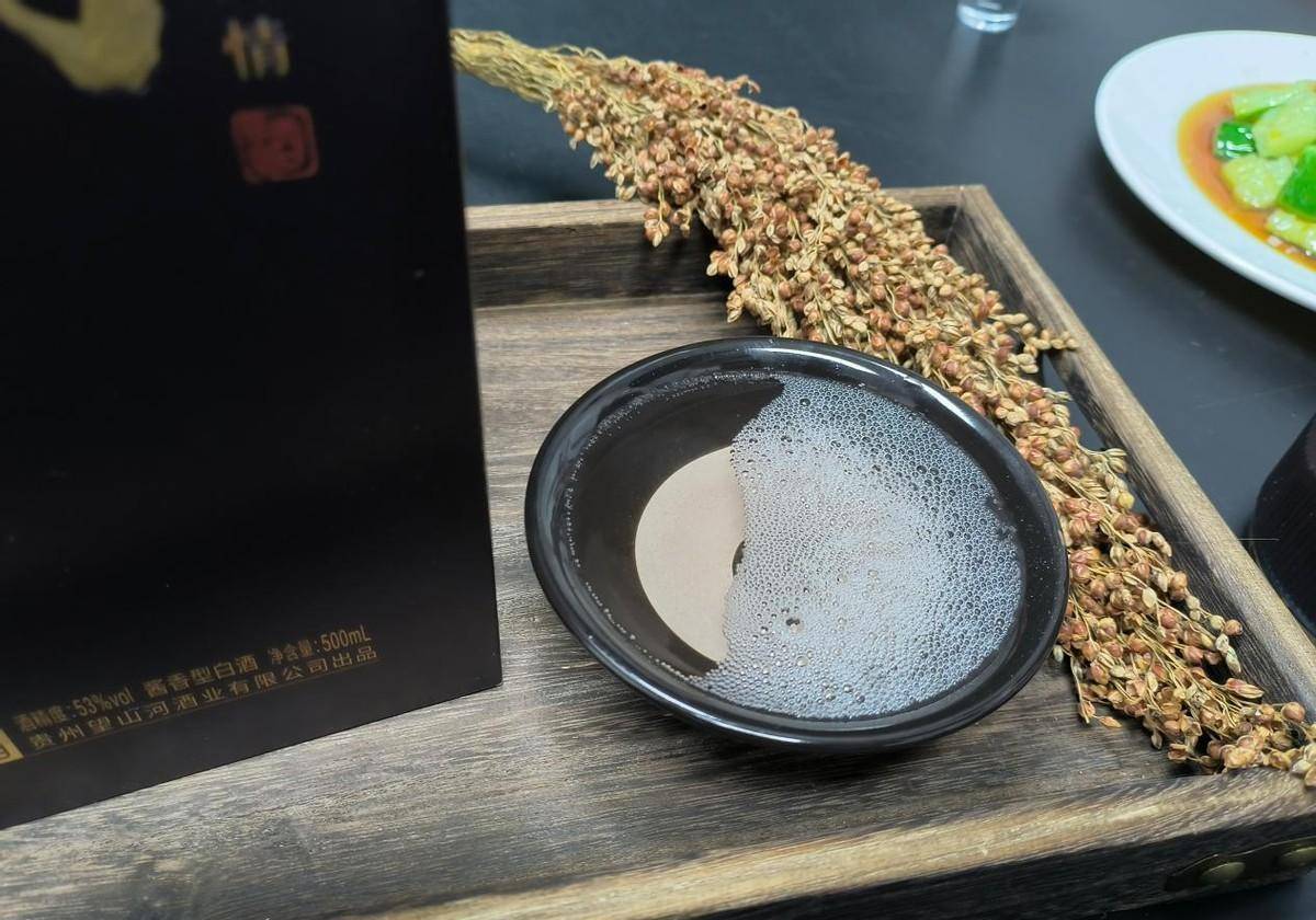 在基酒酿造完成后,为了去除其中的杂质,会先窖藏上6年的时间,等到所有的物质挥发殆尽后,在和12年的老酒去勾调,此酒开瓶,一股浓郁的酱香就会散发出来,倒上一杯,观察此酒的酒质,可以明显看到其清澈明亮的酒液,酒花丰盈,挂杯明显。