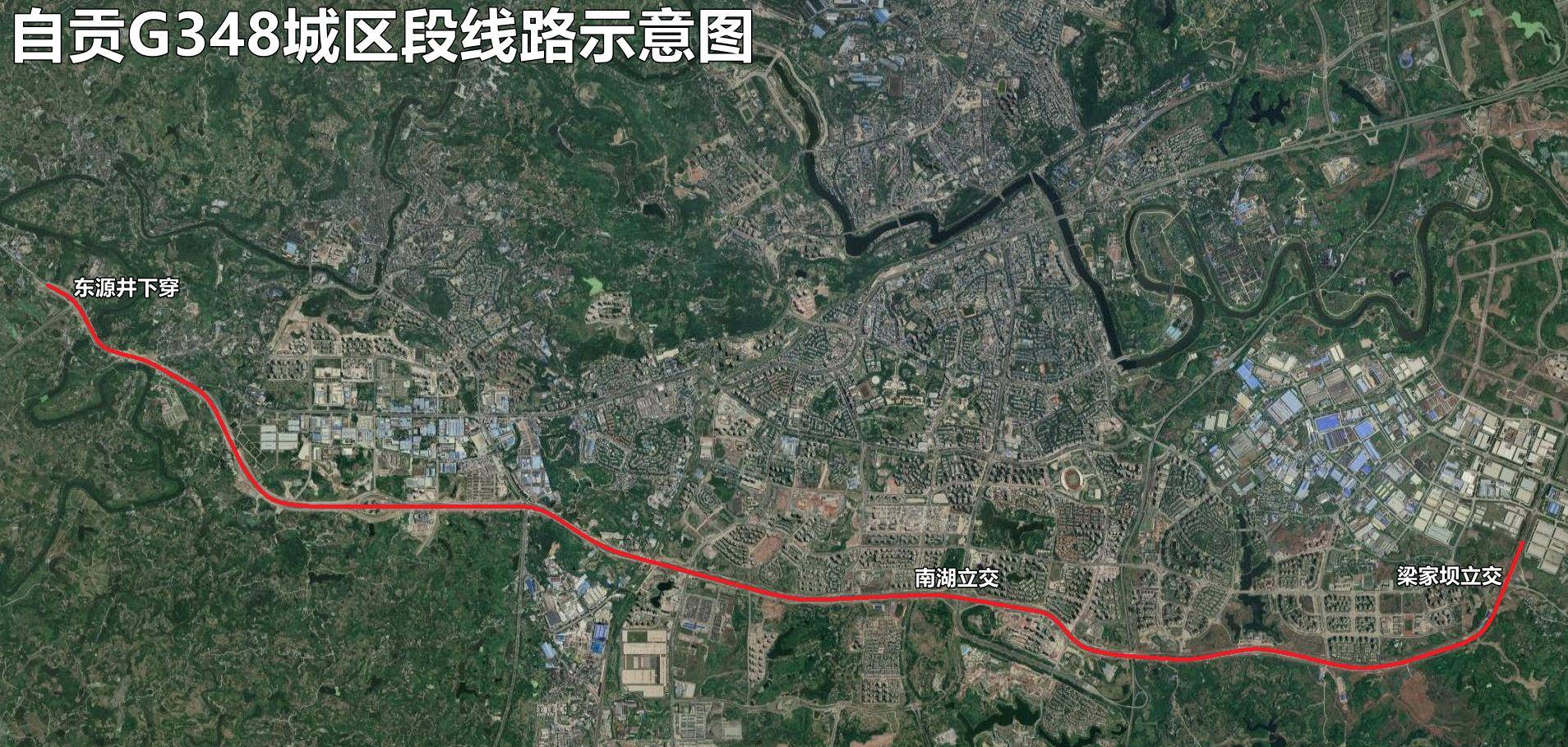 自贡G348国道城区段已于去年底全线贯通,从梁家坝立交入口至东源井下穿出口,全长约17公里。道路为主道(8车道)+辅道(4车道),全程双向12车道,主道中央及两侧主道与辅道之间均建有绿化隔离带,堪称自贡最豪华景观大道。而且,自贡G348主道17公里全程无路口无红绿灯,从板仓至贡井长土仅需10分钟。