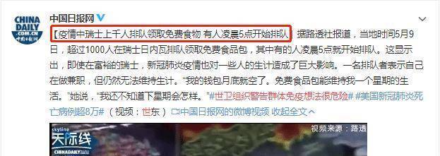 即使是瑞士这样的国家,号称全世界最富裕的国家,但是也有穷人。根据调查,瑞士800多万人口,大概有10%是处于贫困状态的。所以别看一个国家富裕,但也有穷人。由于疫情的关系,瑞士穷人为领取免费食物,凌晨5点排队,这就是传说中最“富裕”的国家?