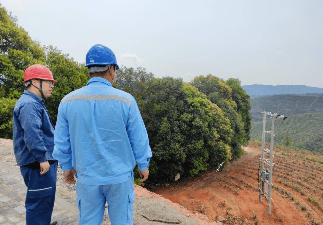 傍晚时分,夕阳西下,供电“铁巨人”成了一个剪影,村寨里传出的阵阵茶香伴着游人下山,对于供电所的人们来说,此时他们最希望的就是没有“存在感”,这说明在他们的努力下,茶山用电高峰期,一切正常。