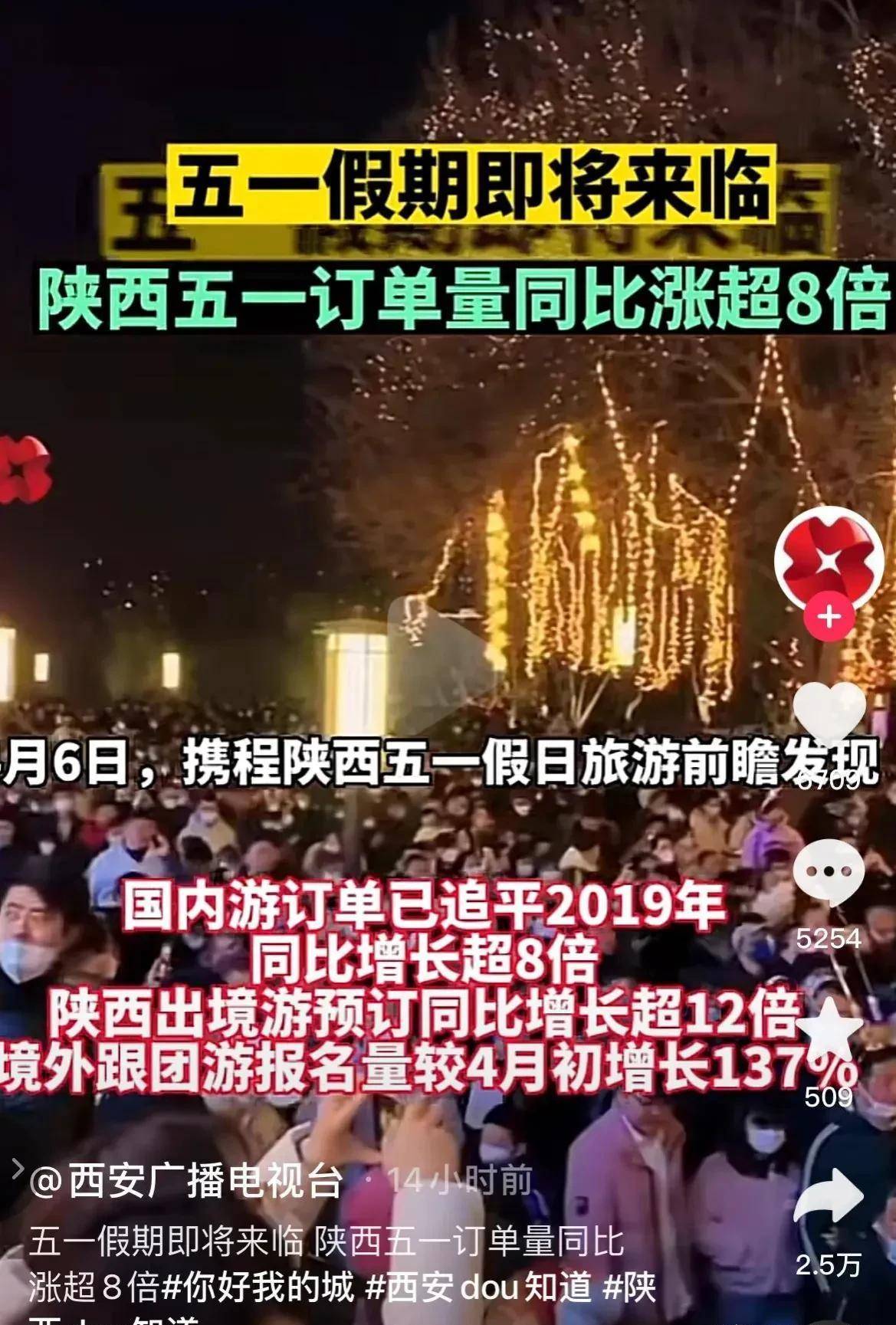 再来看看,五一假期即将来临,陕西五一订单量的涨幅,可以断定的是,说的陕西,但几乎都是西安的占比。回想一下2023年春节期间西安的场景,即将到来的五一,无论是从气候角度、还是需求角度,一定会更上一层楼。