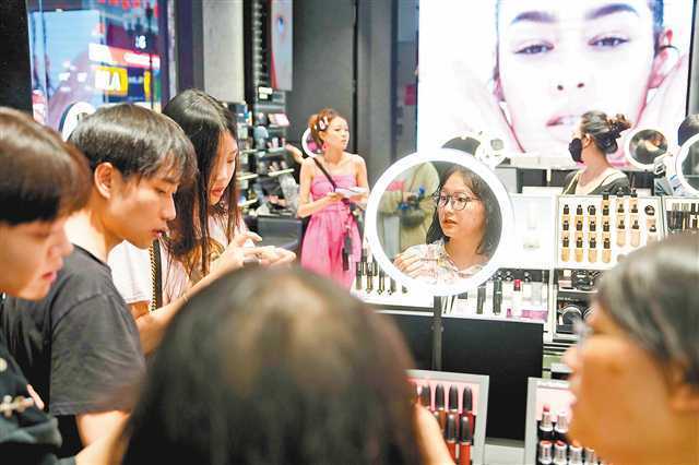 8月5日,渝中区解放碑一商场,市民在挑选化妆品。记者 谢智强 摄/视觉重庆