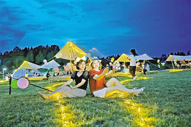 8月5日,游客在彭水苗族土家族自治县汉葭街道北斗村北斗星空轻奢营地游玩,欢乐度周末,乐享高山避暑纳凉的好时光。特约摄影 赵勇/视觉重庆