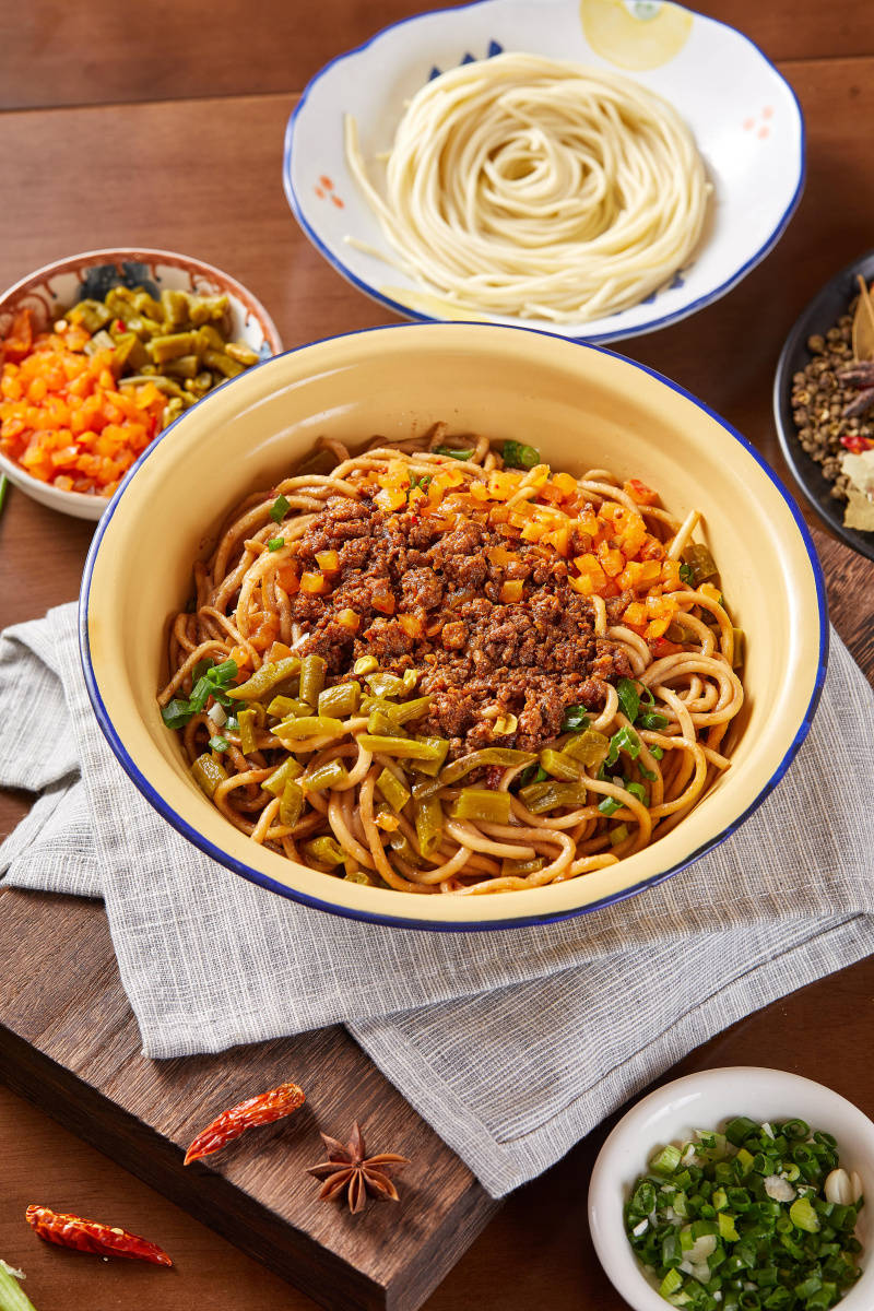 武汉热干面。热干面是武汉最具代表性的美食之一,也是湖北最受欢迎的小吃之一。这道面食通常用细面条煮熟,加入芝麻酱、辣椒油、葱花和花生碎等配料。热干面口感软糯,味道鲜美,是武汉人民早餐和快餐的常见选择。