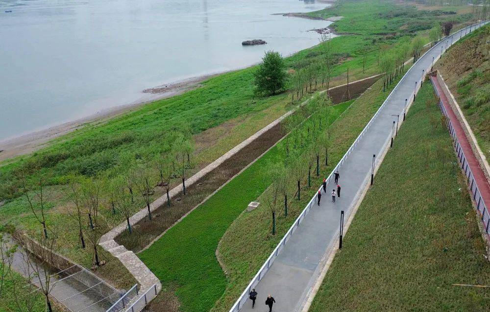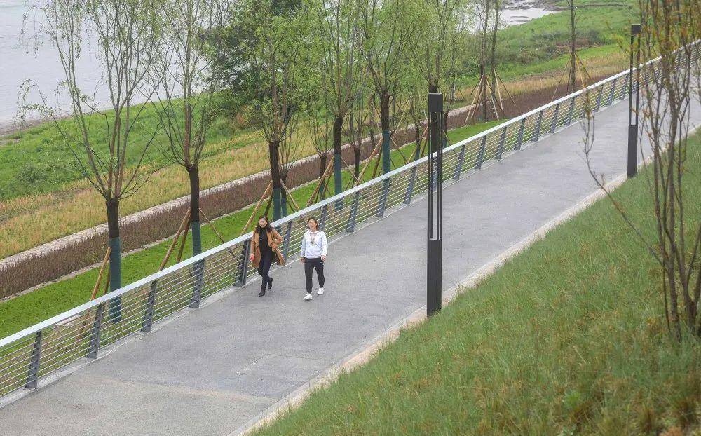 目前,滑石滩至万发码头段约1.4公里,面积约11万平方米已完工,在保留原有消落带植物的基础上,对沿线堤岸及其距离江面近40米宽的边坡、江滩植绿局部点缀乔木灌木,打造兼具步行和骑行功能的活力道与亲水道,串联起供市民活动休憩的3处节点广场。据悉,该路段不久将向市民开放,为“两江四岸”再添美景。