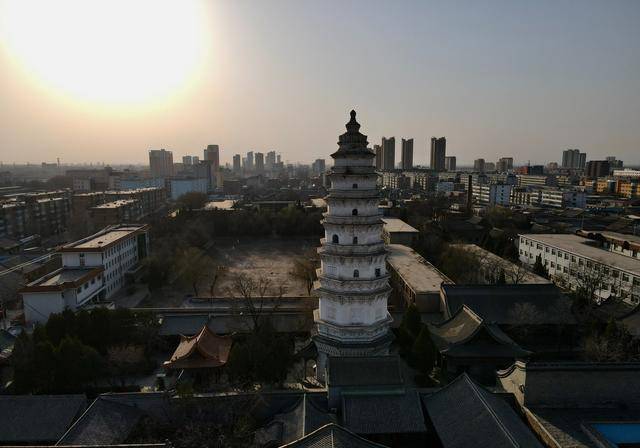 我们从南边进来,慢慢走慢慢欣赏,不一会就到了无边寺,这也是太谷城里最为古老的建筑了,寺内的白塔建于北宋元佑年间,平面八边形,七级楼阁式,高43.6米,因为通体白色,所以大家也习惯叫它白塔。相传当年初建时在塔身涂抹了大米糊在塔外导致多年不褪色。