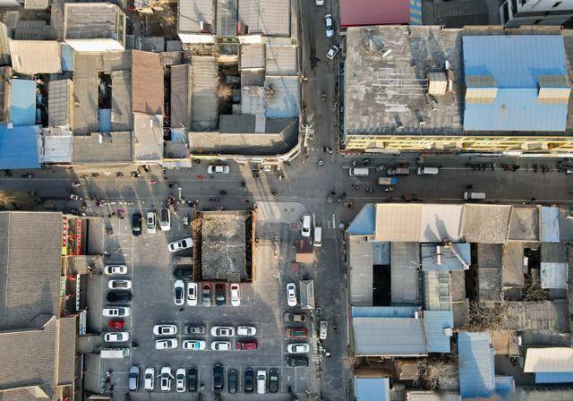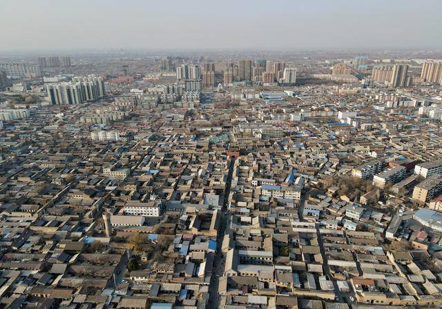 十字街的中心是气派的鼓楼,从高空俯瞰整座城规模宏大,布局整齐,飞檐斗拱的高墙大院遍布,这样的场景如果放在明清时期就是一个繁华的都市。