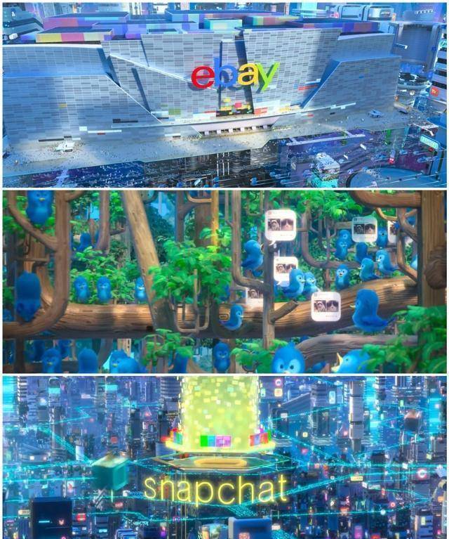但是关于这个虚拟互联网的世界,很多中国观众很难有什么共鸣。作为中国具有巨大影响力的互联网公司,出现在电影里面寥寥无几。能被观众一眼认出来的只有:新浪和天猫的标志性招牌了。而它们的作用,也仅是丰富虚拟互联网世界的街景而已,根本让观众产生不了多少共鸣。