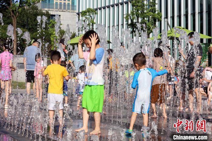 原标题:夏日时节 上海街头喷水池成为孩子们的“戏水乐园”