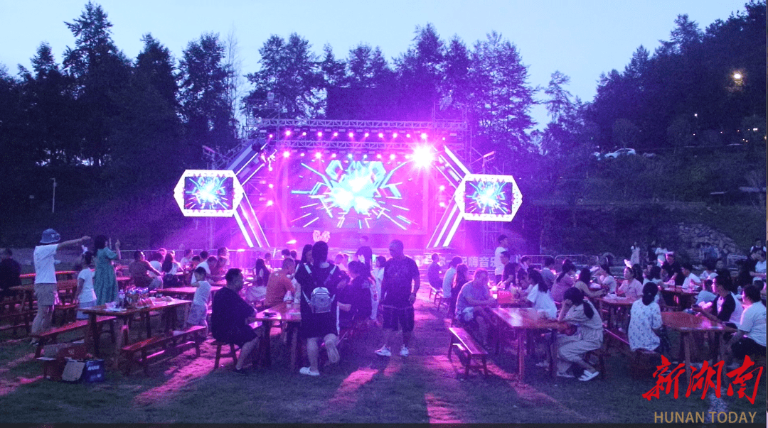 8月4日晚,海拔680米之上,湘西土家族苗族自治州吉首市矮寨峡谷星空露营基地的茵茵草地上,2023年吉首第二届峡谷星空啤酒音乐节,精彩继续上演。