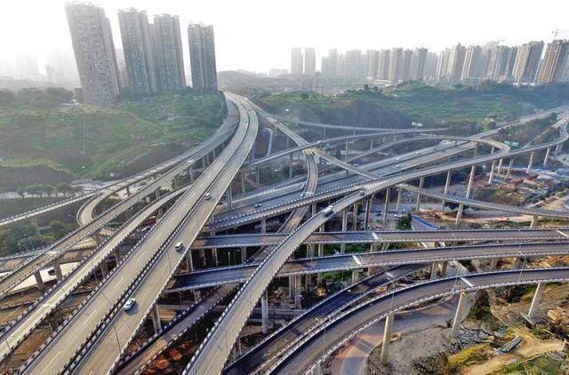 特别是重庆的一个网红立交桥——黄桷湾立交,是连接朝天门大桥、慈母山隧道、内环高速、机场专用快速路的重要节点,有8个方向,高有5层,一共有20条匝道。这个立交桥是重庆主城区最复杂的一个立交,导航都分不清应该走哪一条路,要结合导航与路面标识才行。