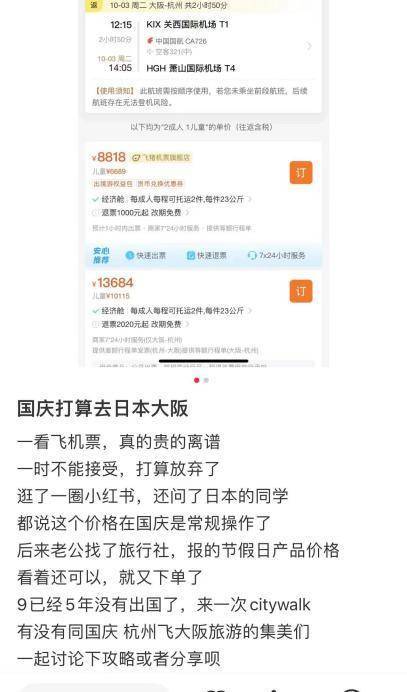 (社交网络上网友吐槽国庆去日本的机票贵)