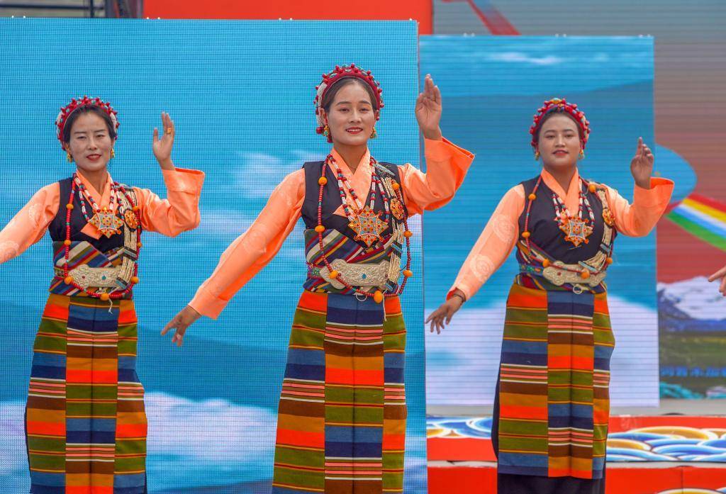 新华社拉萨8月5日电(记者刘洲鹏 邵泽东)4日,位于西藏日喀则市拉孜县的堆谐人民广场热闹非凡,数千名本地群众和游客在观赏堆谐表演。在拉孜县第八届堆谐文化旅游推介会上,拉孜县艺术团“90后”演员格桑卓玛头戴华丽的巴珠(缀满珠玉的藏族头饰),身穿明艳的邦典(藏族色条围裙),唱着轻快欢乐的藏歌,脚上的踢踏动作随着悠扬的扎木念琴声时快时慢,引得台下观众高声喝彩。