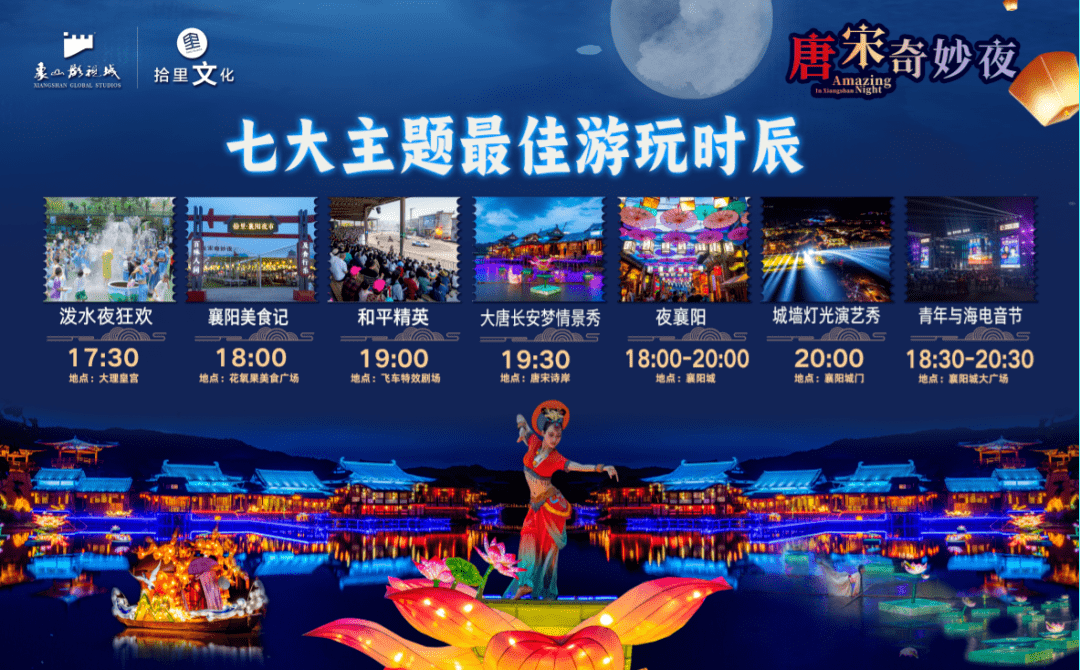 街铺酒肆逛够了,不要忘记了, 襄阳夜市内,江湖绝活、花船演绎、独竹水上漂、步步生莲、王员外招婿、唐宋有礼情景互动等精彩节目正在轮番上演。