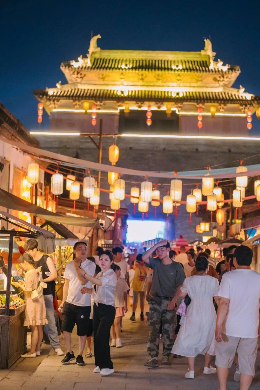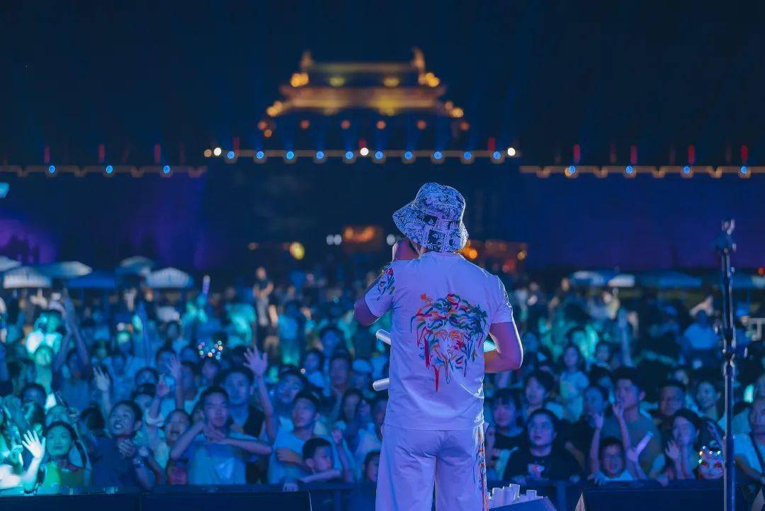 在古战场搭建的 电音节舞台,激情电音穿透夜空,划破夜游空气,在唐宋风的氛围感中增添了一抹潮酷文化。